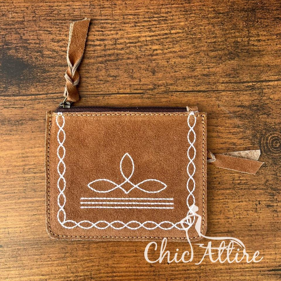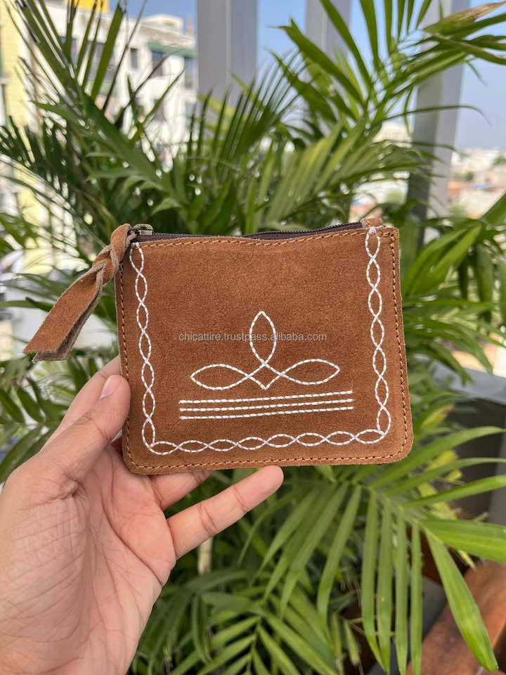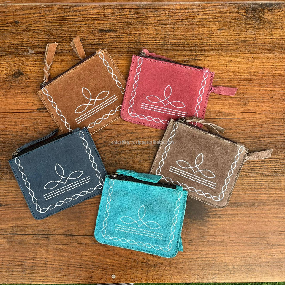 Hot Selling Custom Boot Stitch Suede Leather Mini Change Wallet for Women High Quality Vintage Genuine Leather Zipper Coin Purse