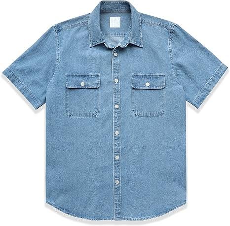 Hot Selling Custom Denim Jeans Shirt Long Sleeve Buttons Chest Pockets Breathable Stretch Eco-Friendly Casual Workwear Spring