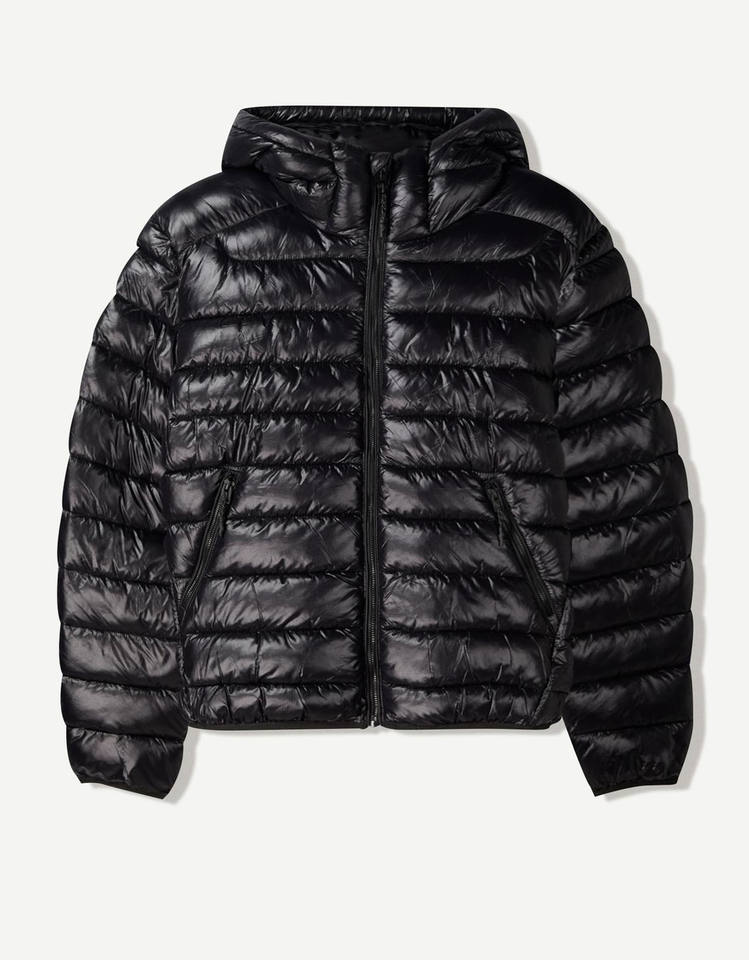 Hot Selling Custom Design Black Men Puffer Jacket Lightweight 100% Polyester Hooded Down Jacket Male Bubble Thick Quilted Jacket