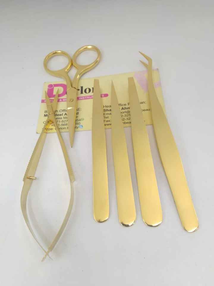 Gold Plated Eyebrow Tweezers Scissors And Eyelash Tweezers Set