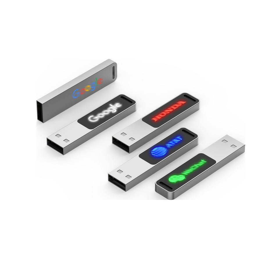 Hot Selling Custom Light Logo Mini Metal USB Flash Drive 4GB 8GB 16GB 32GB 64GB in Black & Silver Finish Portable USB Disk