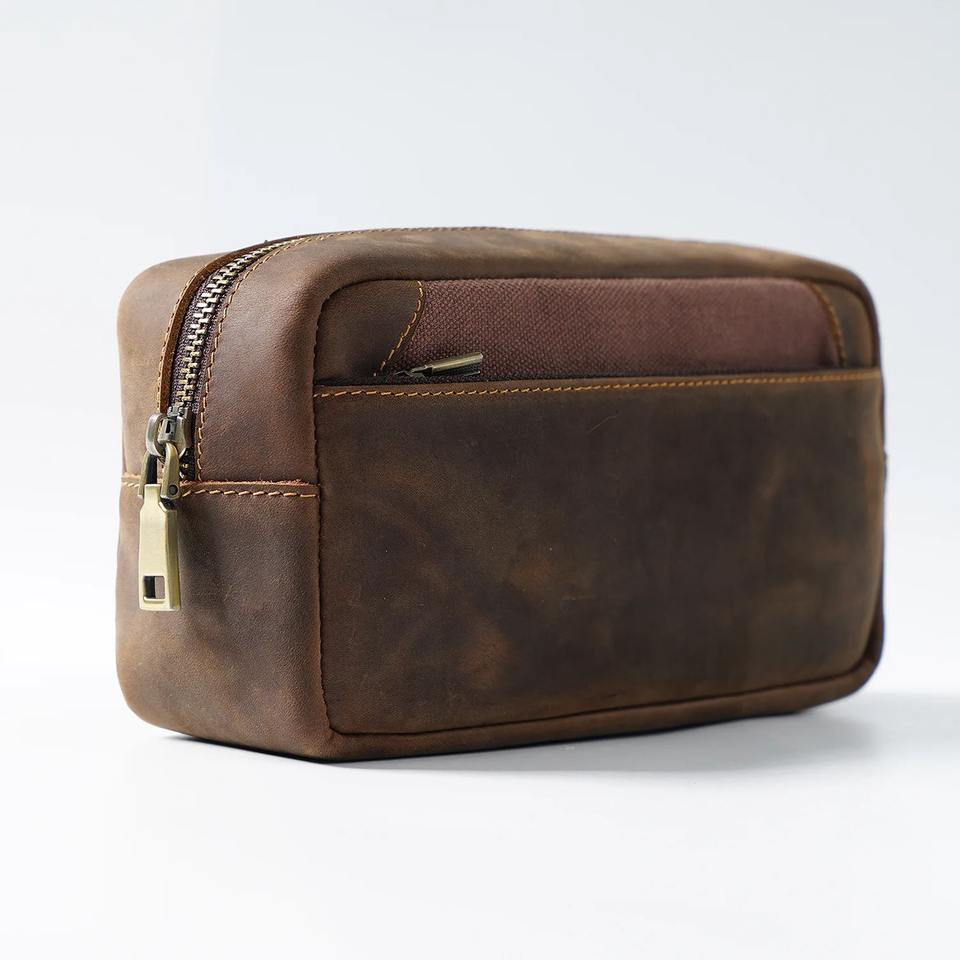 Hot Selling Custom Logo Genuine Leather Travel Organizer Large Capacity Makeup Cosmetic for Toiletry Bag Zipper Eco-Friendly
