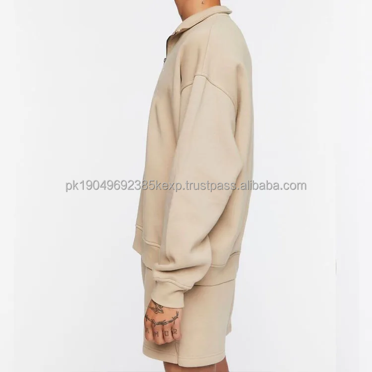 Hot Selling Custom Men's Hoodies Cotton Terry Blank Short Set Drop Shoulder Half Zip Sweatshirt for Men