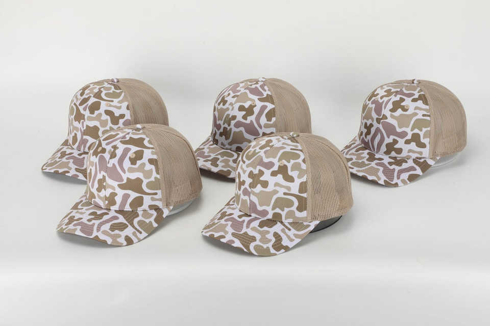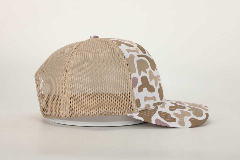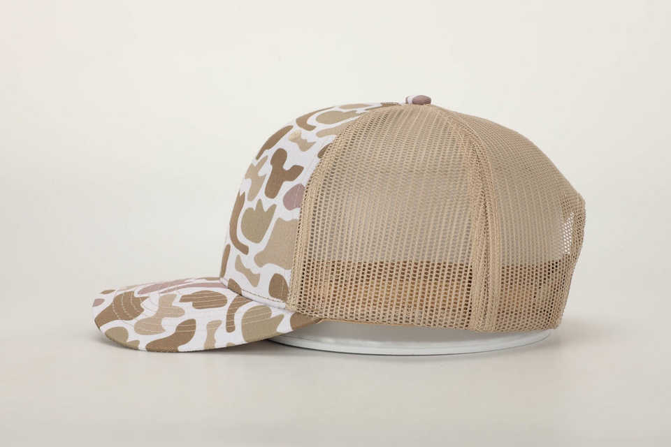 Hot Selling Custom Polyester Khaki Mesh Back Trucker Hat Desert Camo Camouflage Snapback Cap Old School Classic 112Trucker Hat