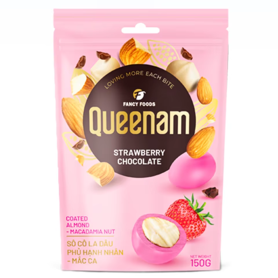 Hot Selling Custom Private Label Bulk Wholesale Dragee Chocolate HALAL Strawberry Coated Almond Macadamia Nuts 150G Candy Supply