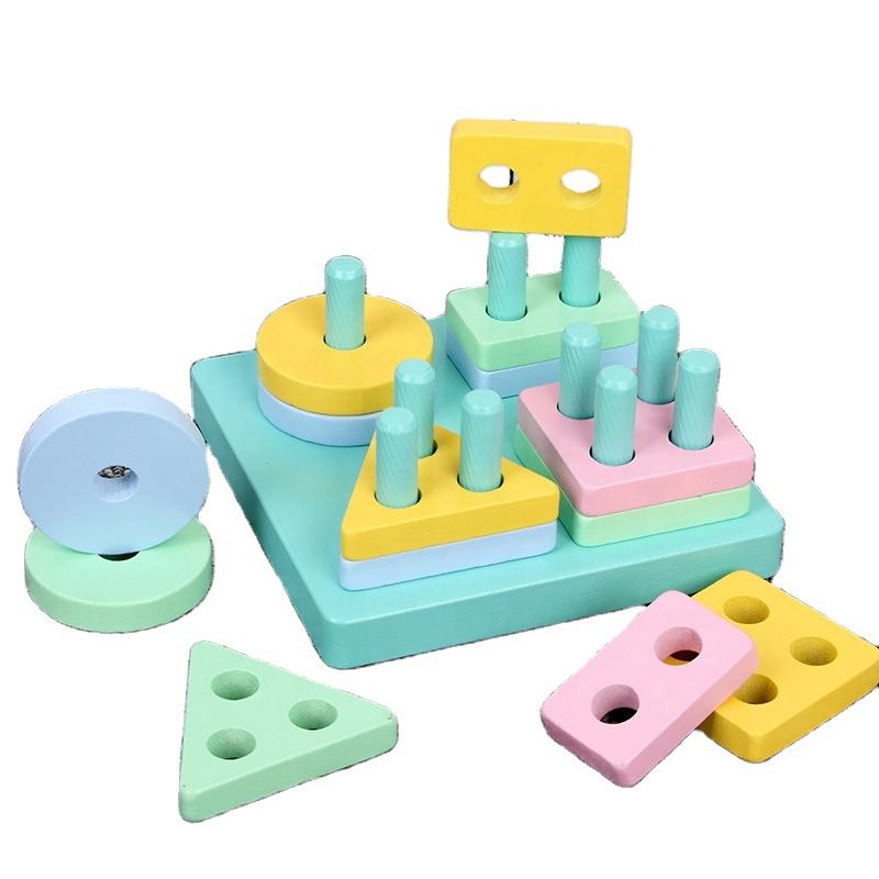 Hot Selling Custom Solid Wood Baby Puzzle Hand Grab Board Building Block Set Educational Wooden Toys Child Gift