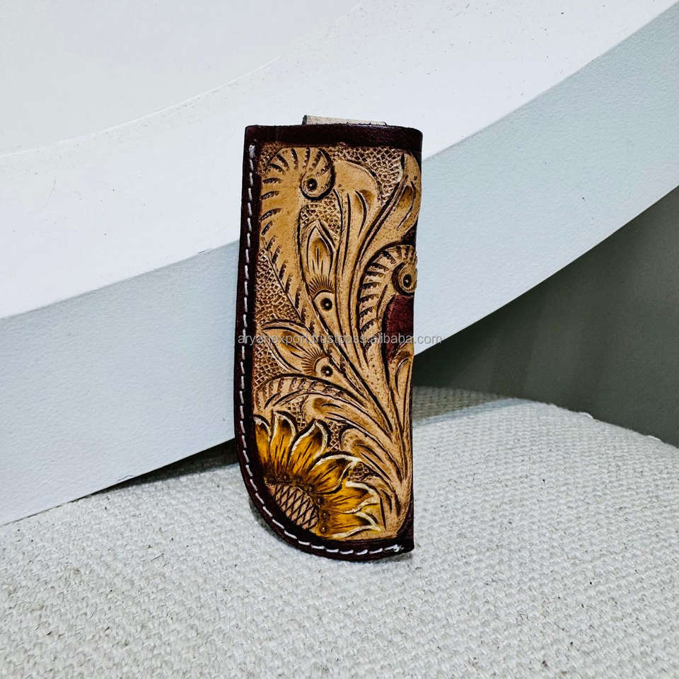 Product Name:Hand Tooled Leather Folding Knife Clip Case