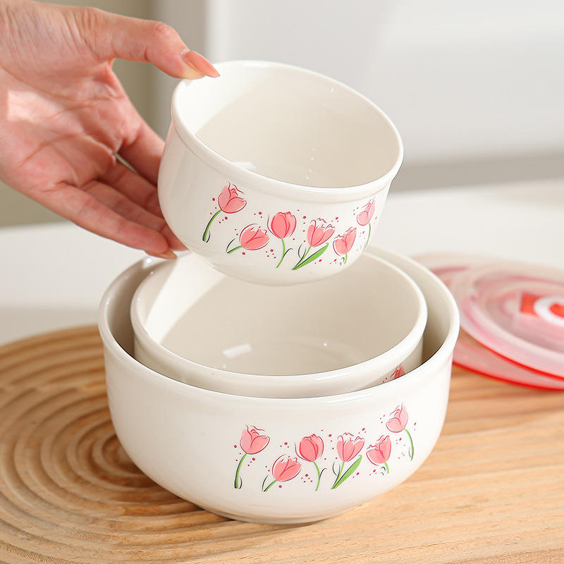 Hot Selling Customized Bowl Set Three-Piece Flower Ceramic Rice Bowl Freshness Bowl Gift Box Gift Set Shop Gift