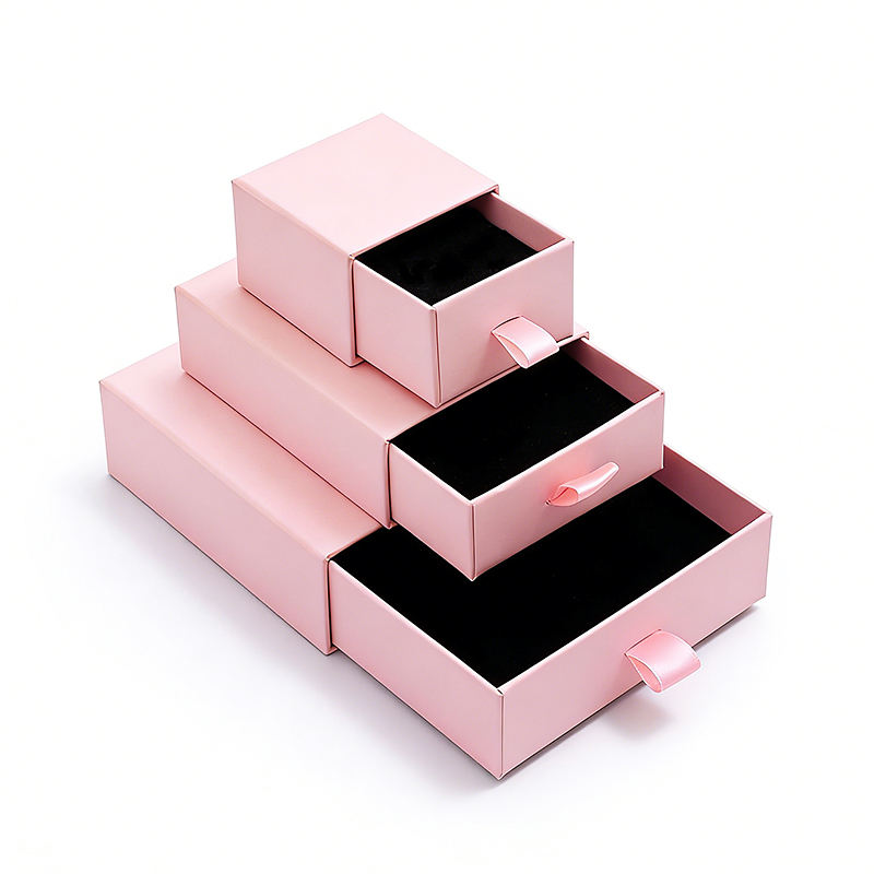 Hot Selling Customized Shape Embossed Gold Foil LOGO Matte Finish Paperboard Gift Jewelry Box Pink