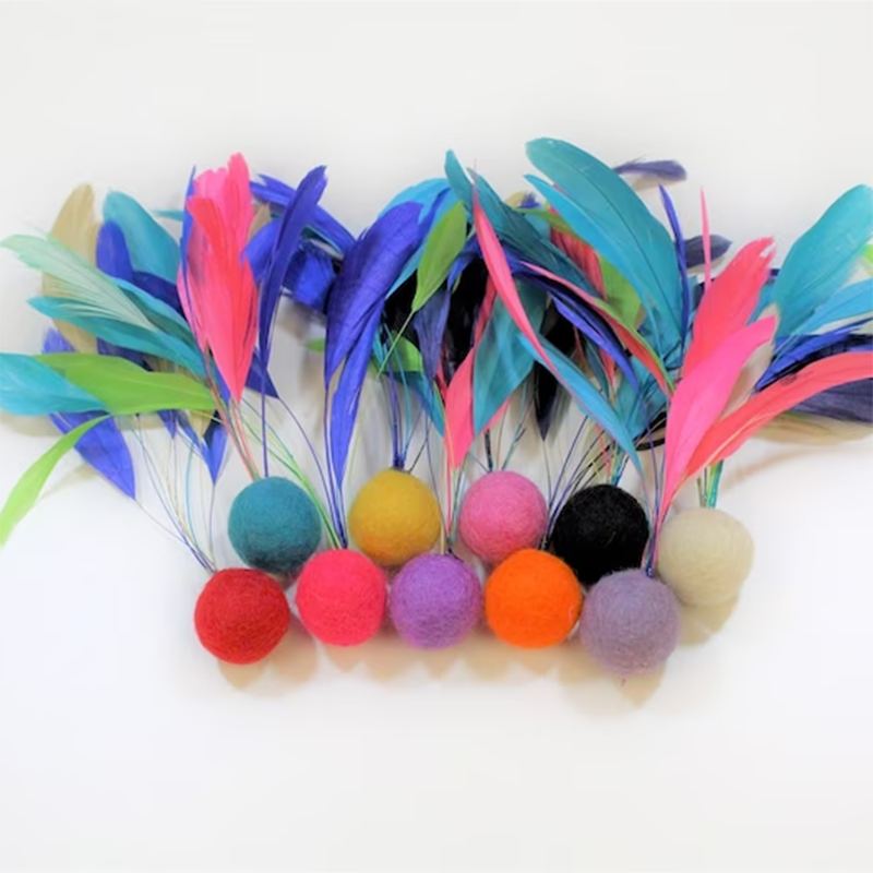 Hot Selling Customized Size Feather Cat Toys / Catnip Infused Wool Felt Ball