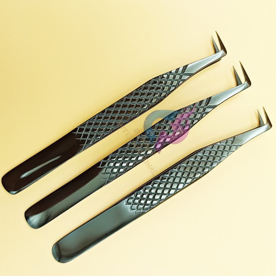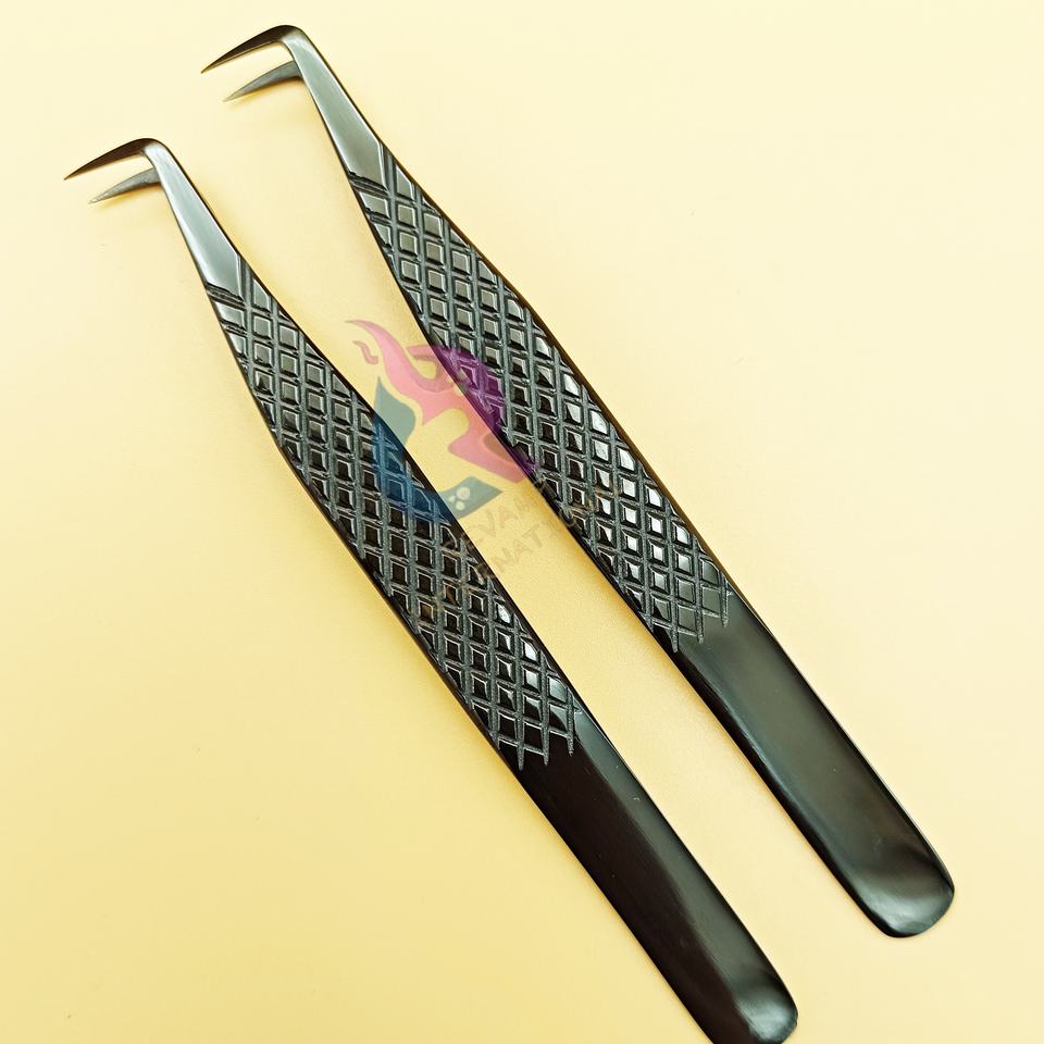 Hot Selling Customized Sustainable Stainless Steel Lash Tweezers For Pick Up Lashes Black Plasma 90 Degree Boot Volume Tweezers