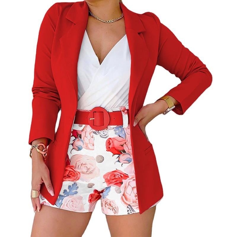 Hot Selling Daily Commuting Temperament Office Suit with Belt Ladies' Fashionable Printed Suit Two-piece Set 2026