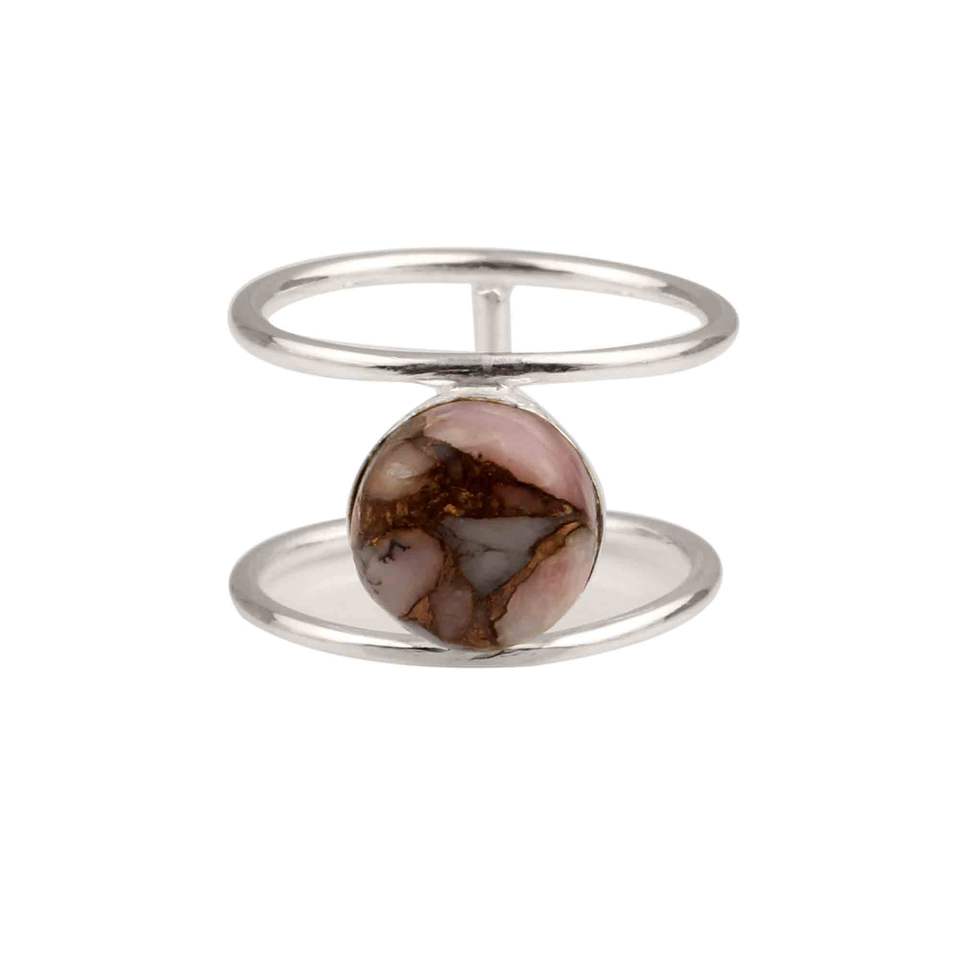 Product Name:Natural Pink Opal Copper 925 Sterling Silver Double Band Ring
