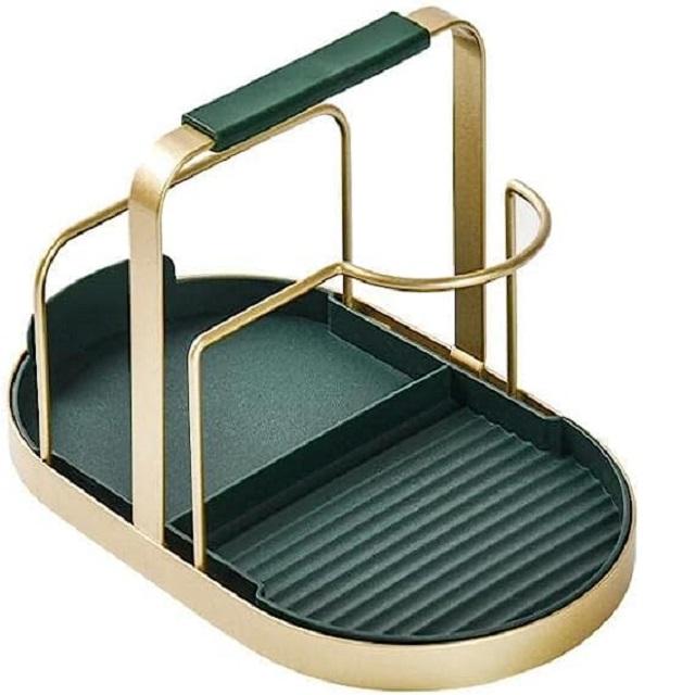 Hot Selling Designed Iron Cast Spoon Rest With White Stone Cooking Utensil Holder Stand Kitchen Accessories Fork Holder for Home