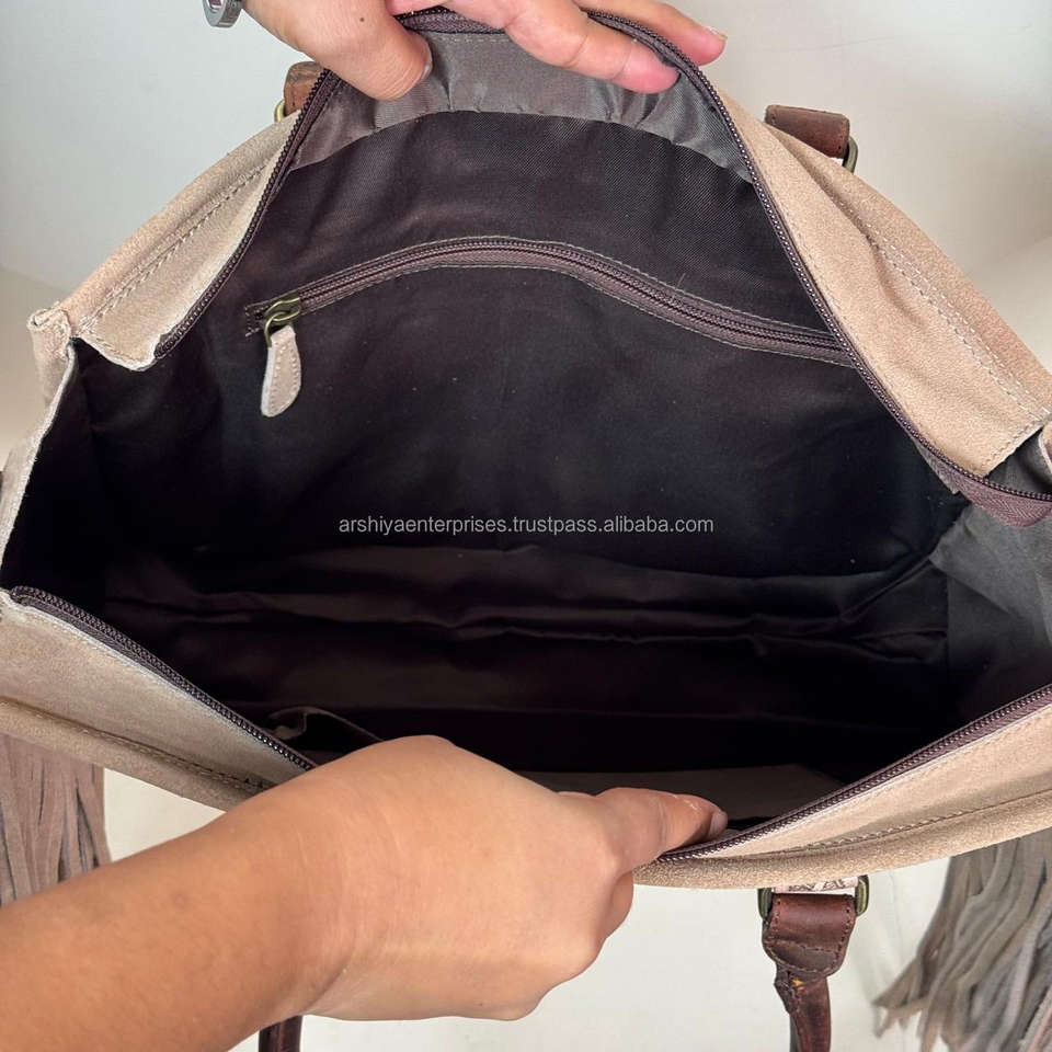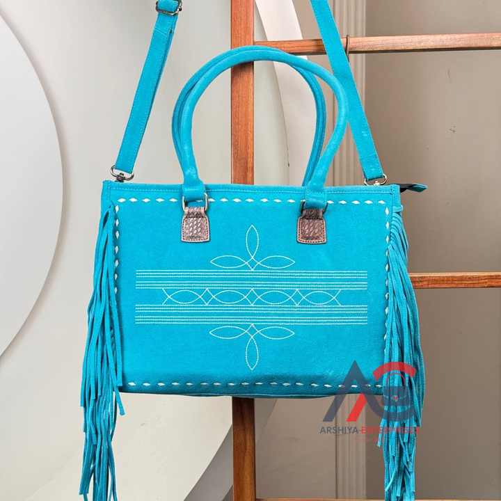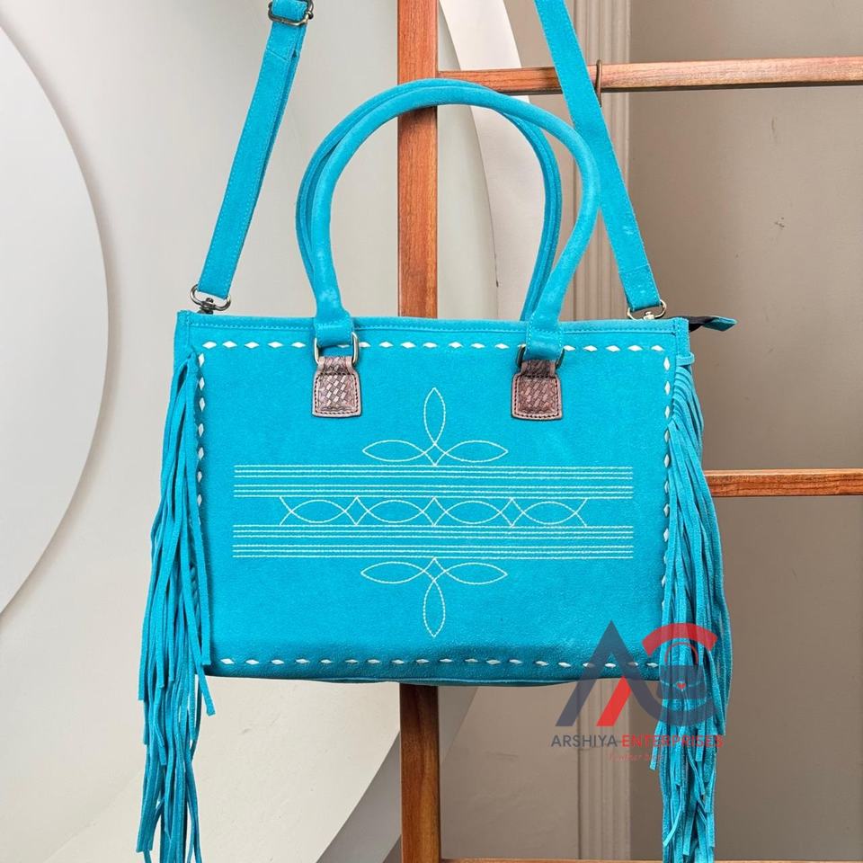 Hot Selling Designer Boot Stitch Hand Tooled Suede Leather Crossbody Shoulder Fringe Handbag for Women's Custom Large Tote Bags