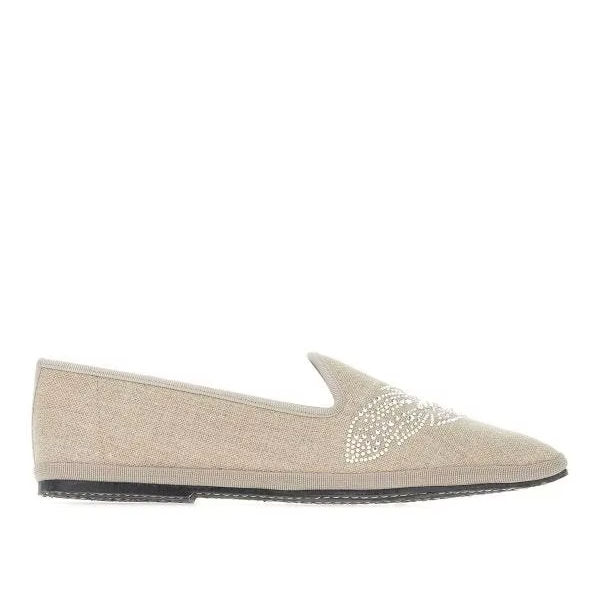 Hot Selling Designer Lemargot Sophie Beige Canvas Ballerinas Flat Shoes Pearls and Crystals Details on the Toe Cap