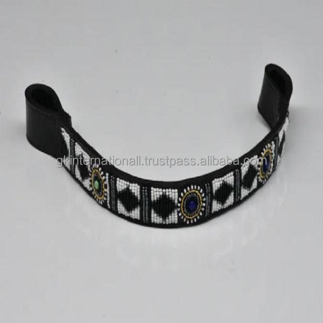 Hot Selling Designer Multicolor Beaded Leather Horse brow band in All Shapes and Custom Sizes Made in India Horse Products