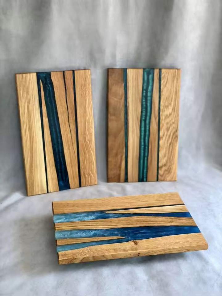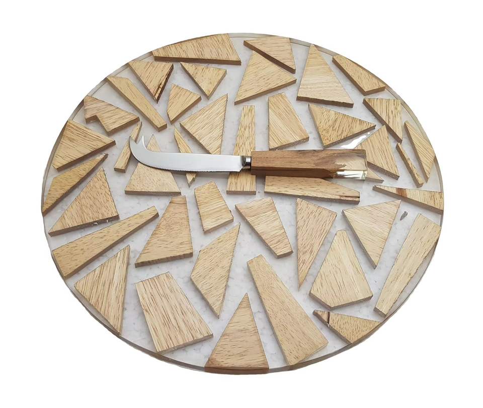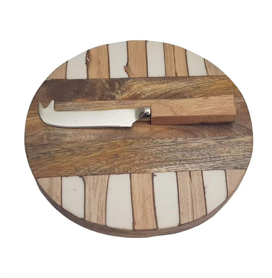 Hot Selling Designer Wood and Resin Cheese Board and Knifes Breakfast Board Wooden Charcuterie Board Platter