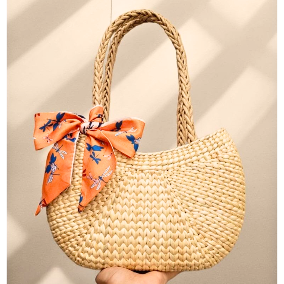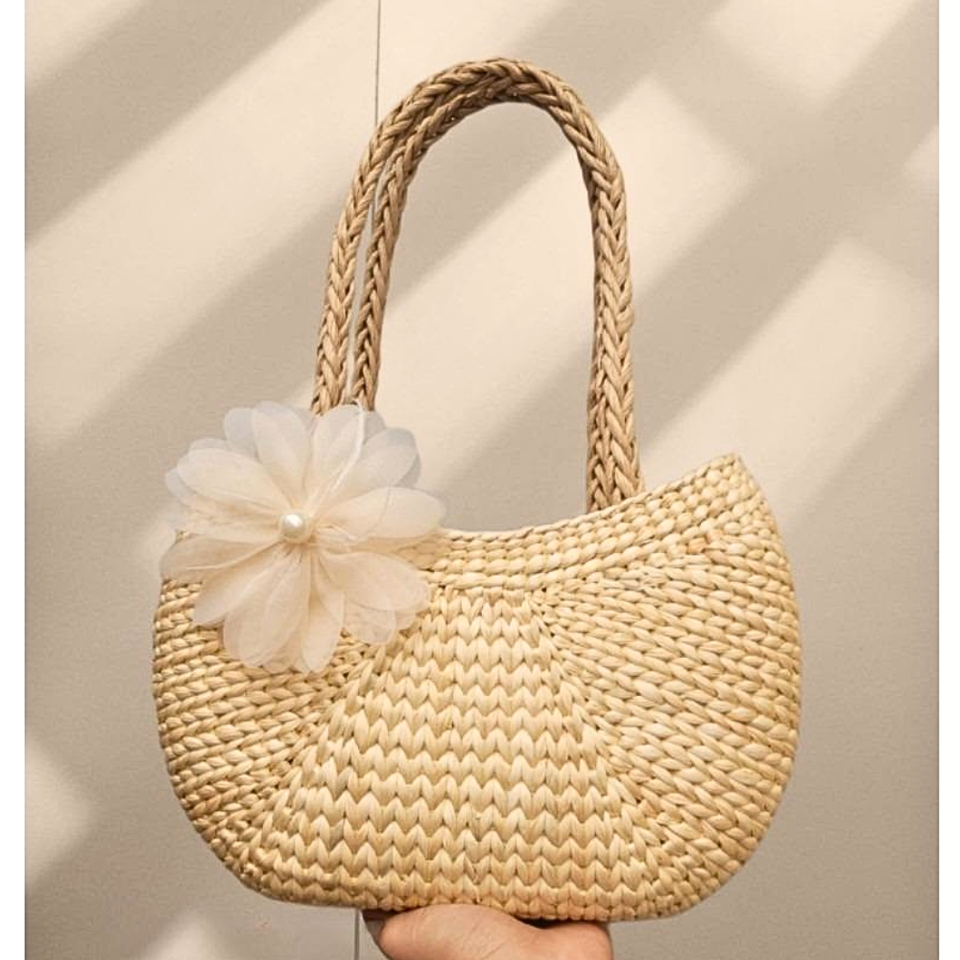Hot Selling Women's Tote Bags Handmade Eco-friendly Wicker Rattan Basket From Vietnam Water Hyacinth & Seagrass Flower Style