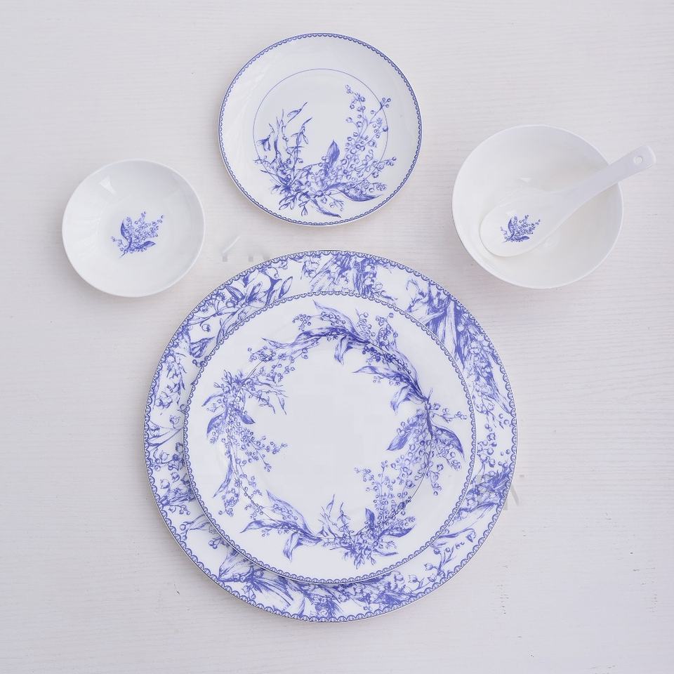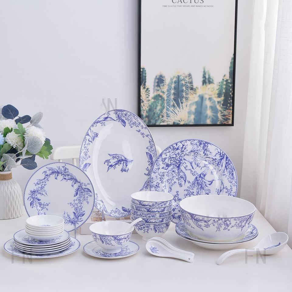 Hot Selling European Blue Patterned 32pcs Porcelain Dinner Set and Dinner Plate