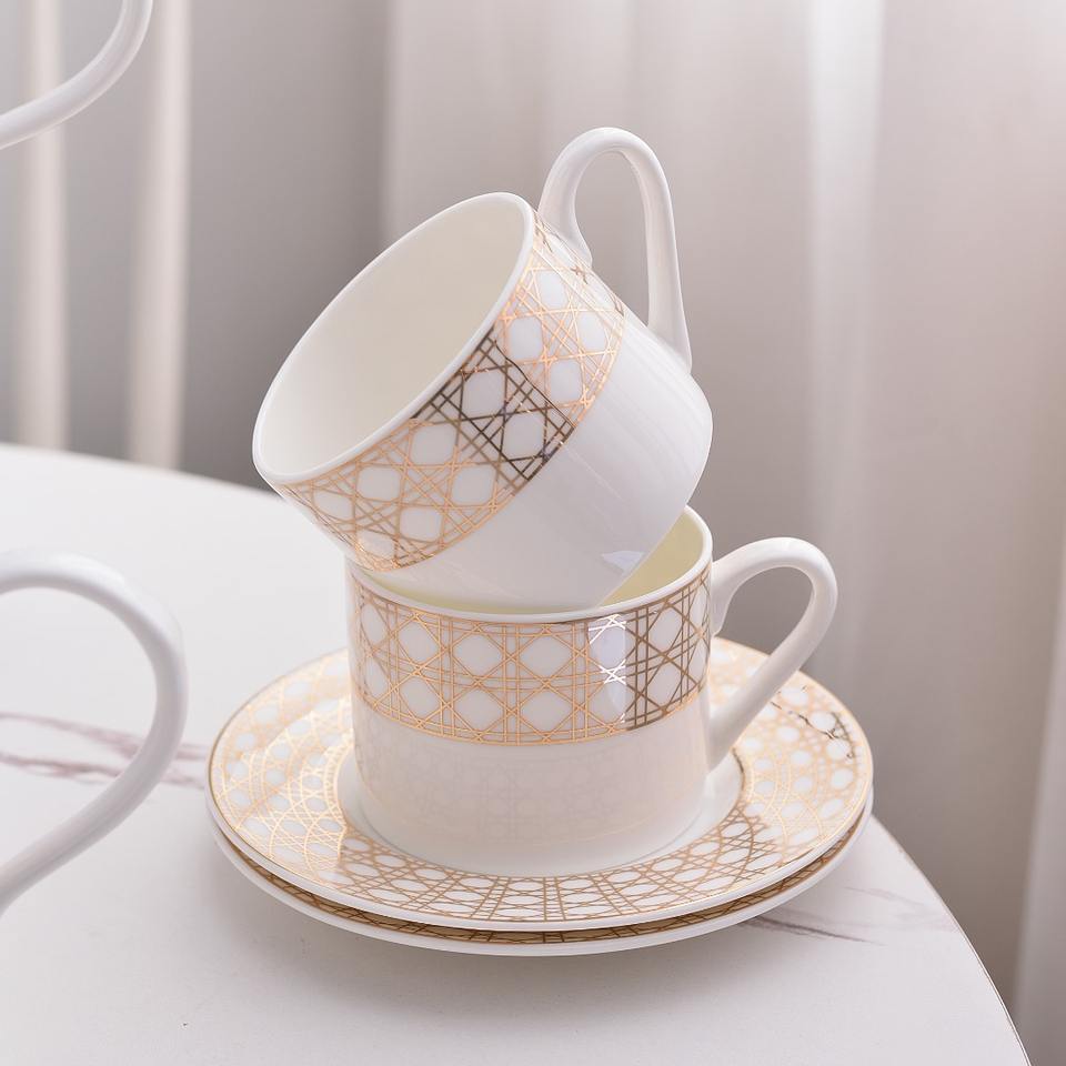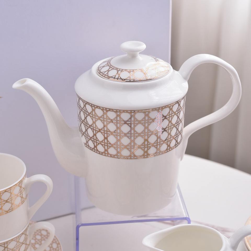Hot Selling European Gold Grid 15 Piece Coffee Set