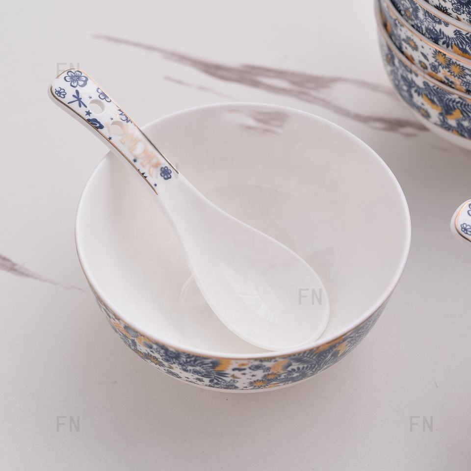 Hot Selling European Luxury Bone China Bowl and Spoon Set