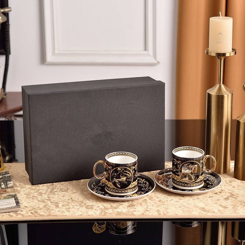 Hot Selling European Luxury Ceramic Coffee and Tea 2 Cup & Saucer Set