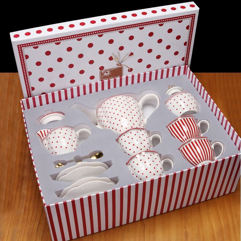 Hot Selling European Style 15pcs Ceramic Coffee and Tea Sets Red and Black Color Scheme