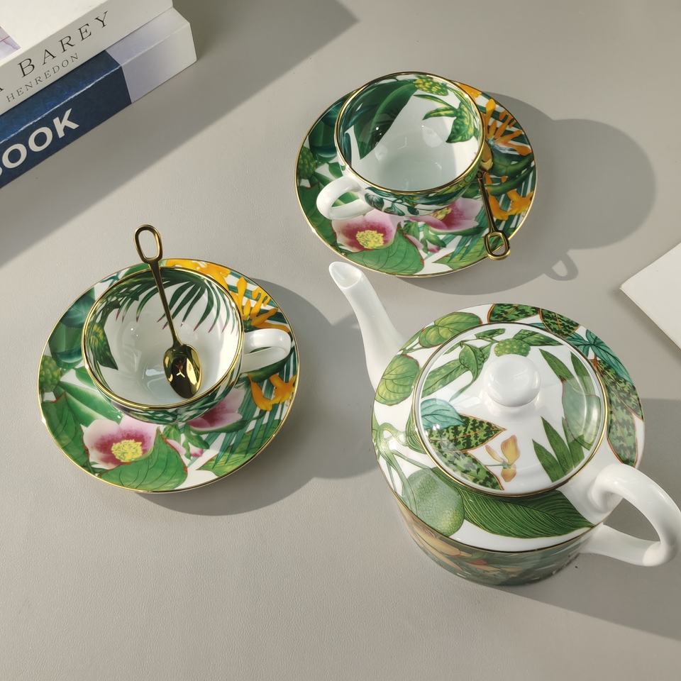 Hot Selling European Style Tropical Rain Forest 4pcs Bone China Dinner Plates and Cup Sets