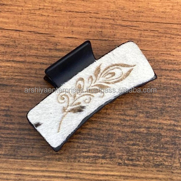 Hot Selling Exquisite Fashion Girls Eco-Friendly Cowhide Laser Engraving Hair Clips for Thick Hair Outdoor Cute Hair Claw Clips
