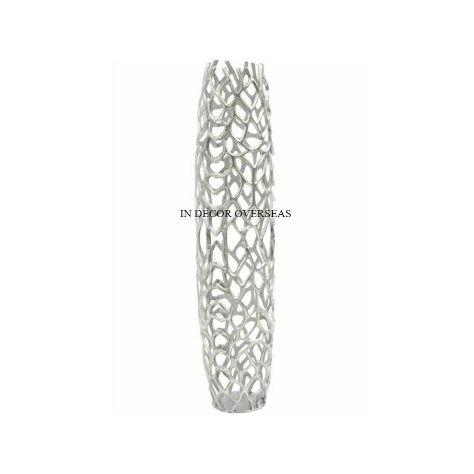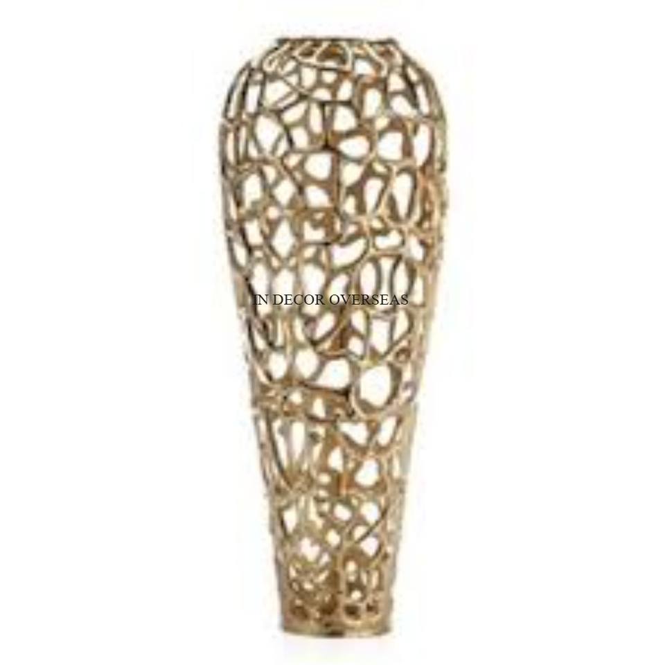 Hot Selling Eye Catching Look Gold Plated And Silver Shiny Polished Unique Designer Texture Heavy Duty Metal Flower Vase Supply