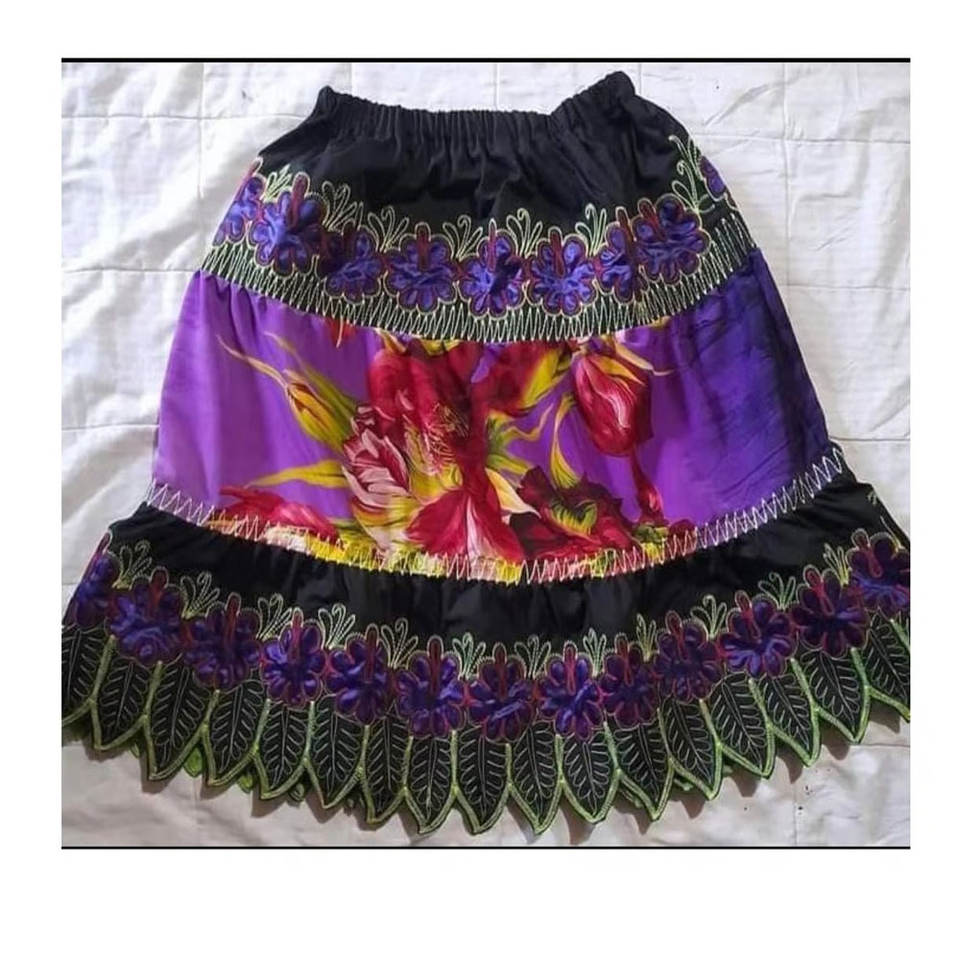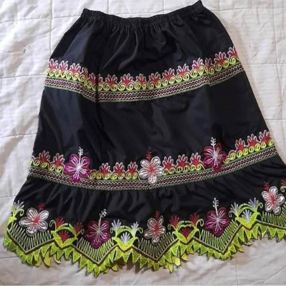 Hot Selling Female Pohnpei Skirt Floral Pattern Embroidered Midi Elastic Waist Skirts Island Micronesian Casual Skirts for Women