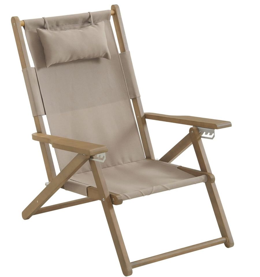 Hot-Selling Folding Eucalyptus Beach Chair Set | Blue Canvas Lounger with Pillow & Armrests | Vietnam Manufacturer