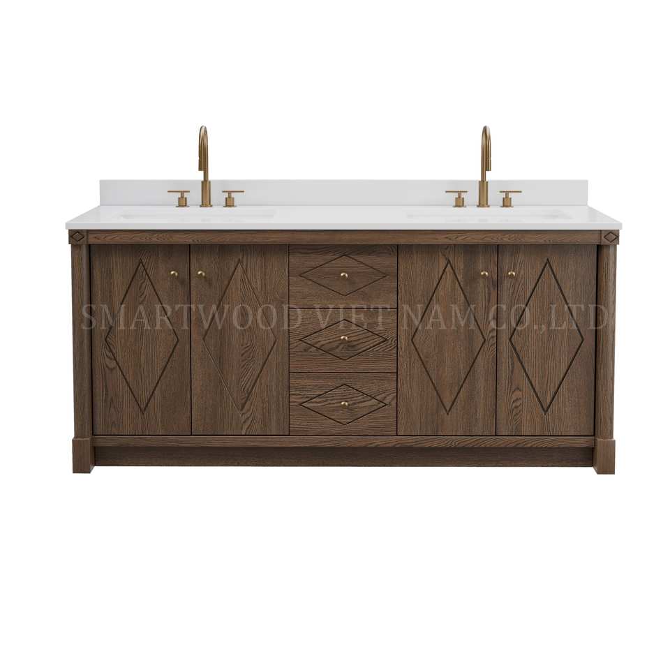 Hot Selling Freestanding Solid Wood Furniture Hotel Bathroom Cabinet Vanity With Drawers