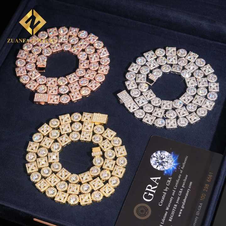 Hot Selling GRA Certified Cluster Moissanite Cuban Necklace Gold Plated 925 Sterling Silver Diamond Cuban Chain Necklace