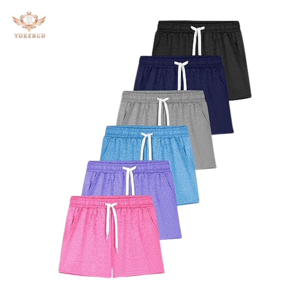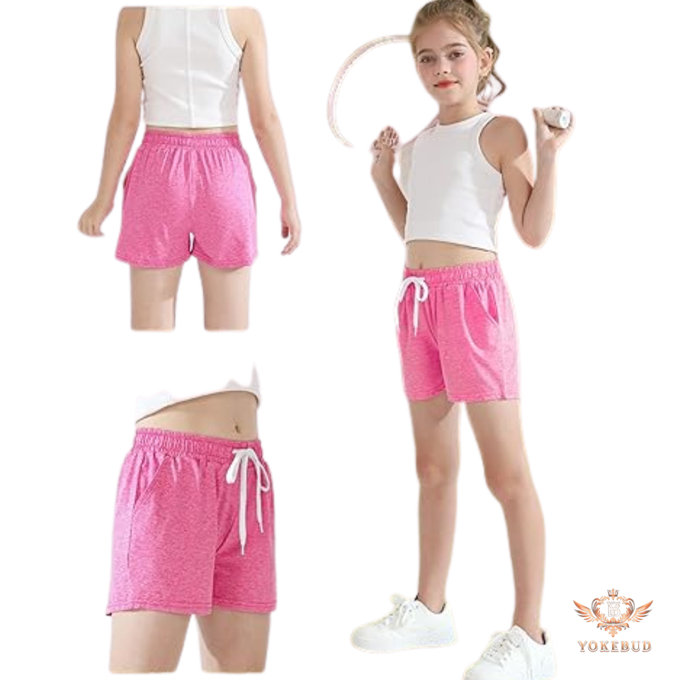 Hot Selling Girls High Waist Dry-fit 100% Cotton Running Shorts with Drawstring Pocket for Summer Sports Kids BD