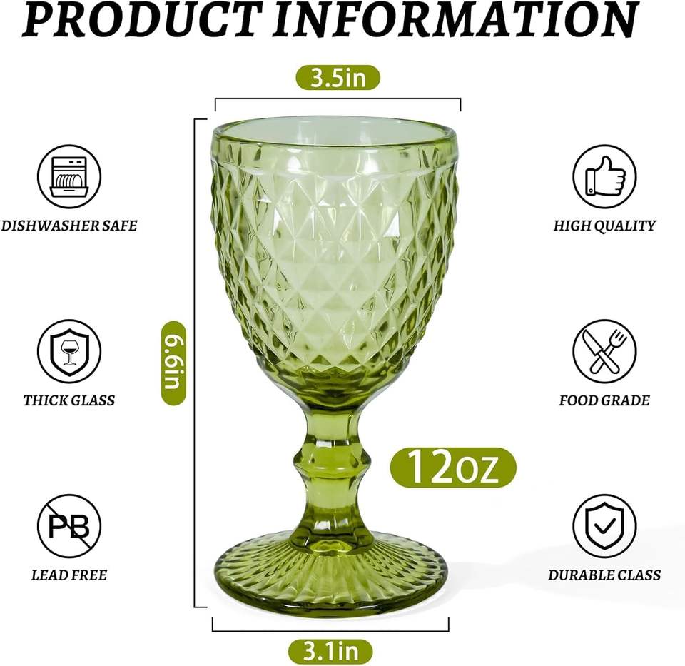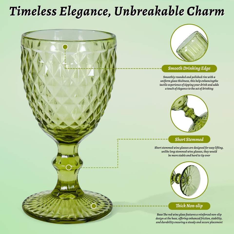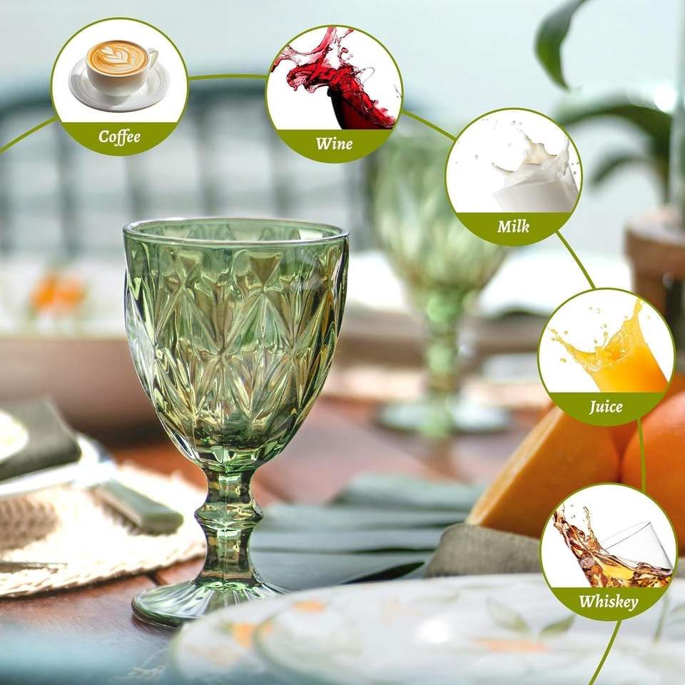 Hot Selling Glassware Colored Goblet Wine Green Goblets Vintage Embossed Glass Goblet