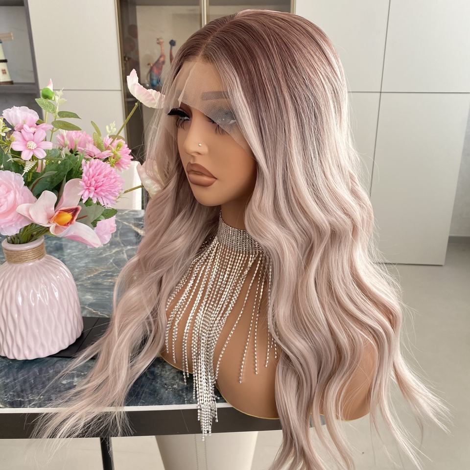Hot Selling Glueless Wigs High Quality 13x4 Lace Synthetic Wigs Ash Pink Blended Women Synthetic Hair Wig