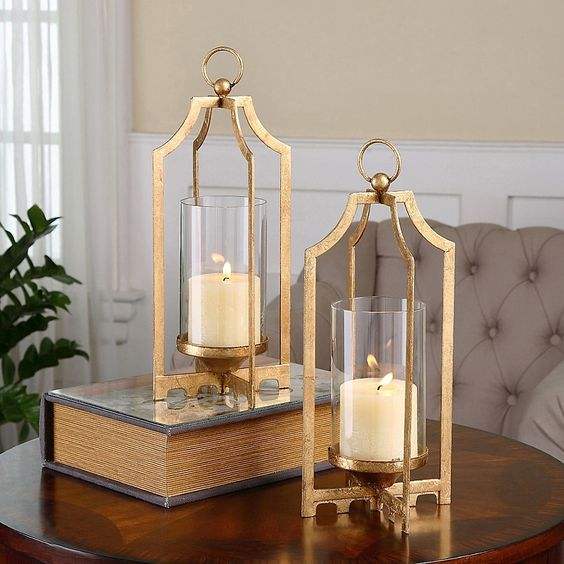 Hot Selling Gold Brass Metal Tabletop Glass Lantern Candle Holder Wholesale for Home Restaurant Decoration Elegant Centerpiece