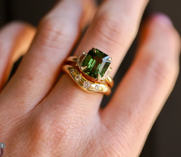 Hot Selling Gold Plated Women Jewelry Green Cubic Zirconia Crystal Engagement Four Claw Emerald Stone Ring