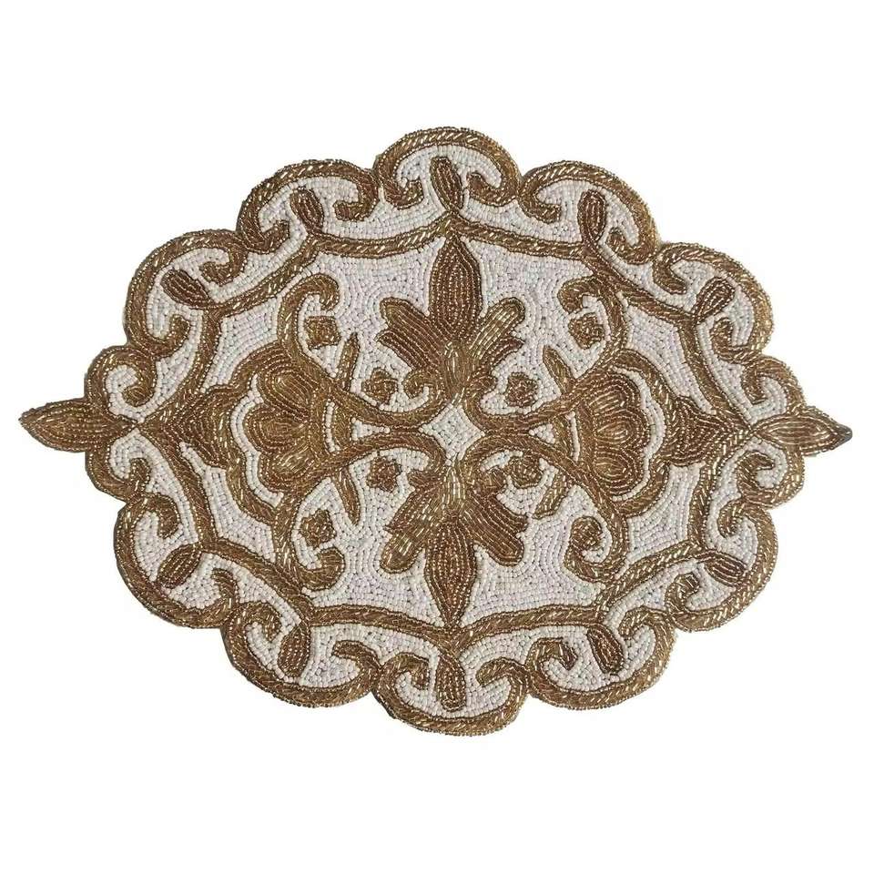 Hot Selling Gold & Silver Glass Beaded Place Mat Dining Table Beaded Kitchen Table Mat Beaded Charger Plate