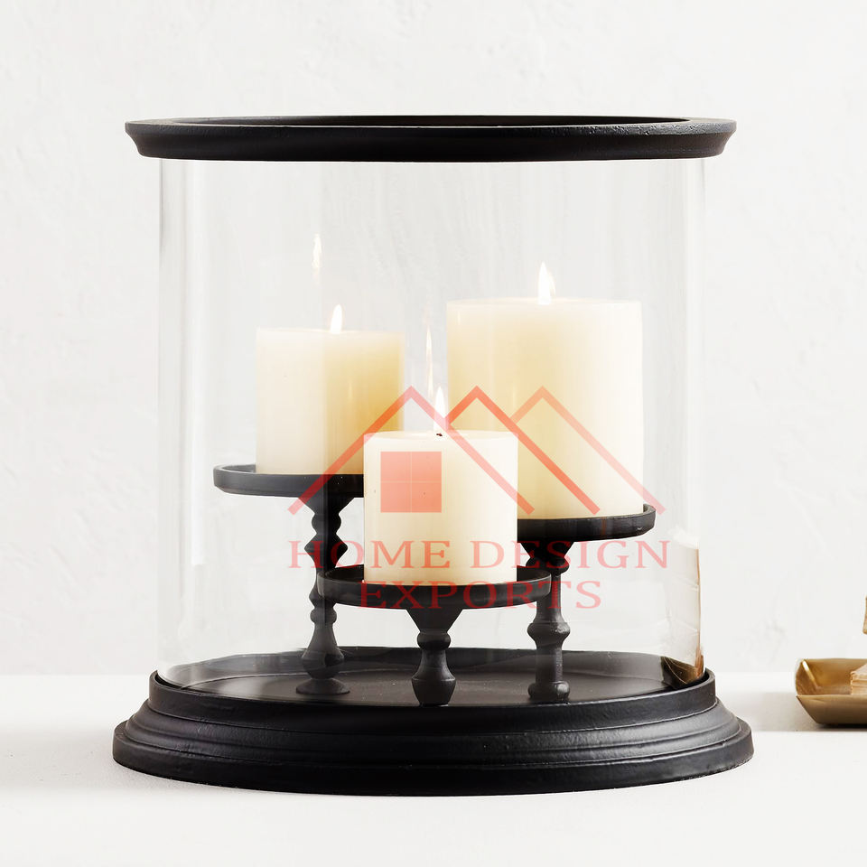 Hot Selling Golden Unique Hurricane Glass Candle Holder