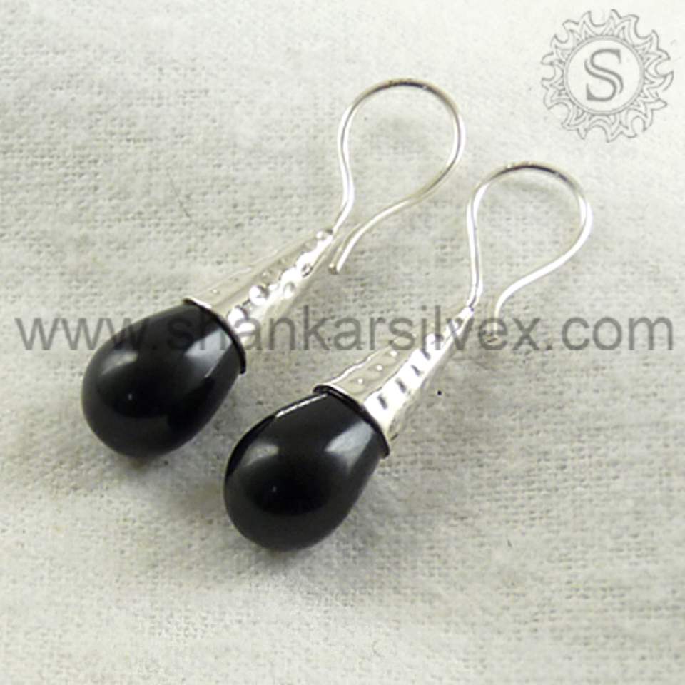 Hot Selling Good Quality 925 Sterling Silver Natural Black Onyx Gemstone Briolette Shape Dangle Earrings for Woman Girls Jewelry