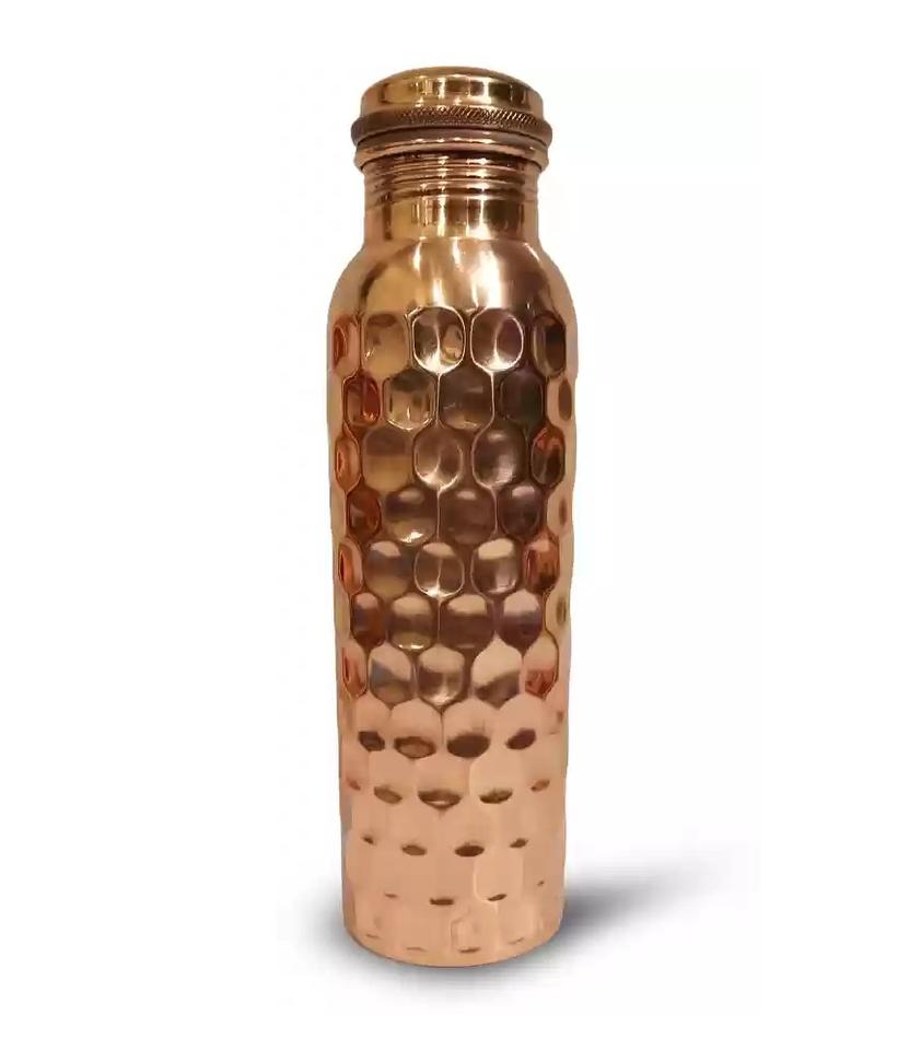 Hot Selling Hammered Design Copper Water Bottle Fancy Water Copper Bottle Shiny Polished Wholesale Free Sample.