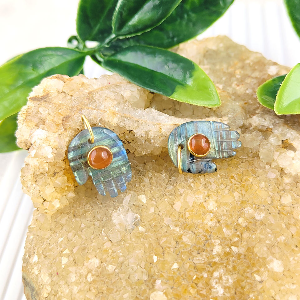 Hot Selling Hamsa Hand Carving Pendant Handmade Hand Shape Gemstone Pendants With 5mm Labradorite Natural Stone Hand Shape Charm