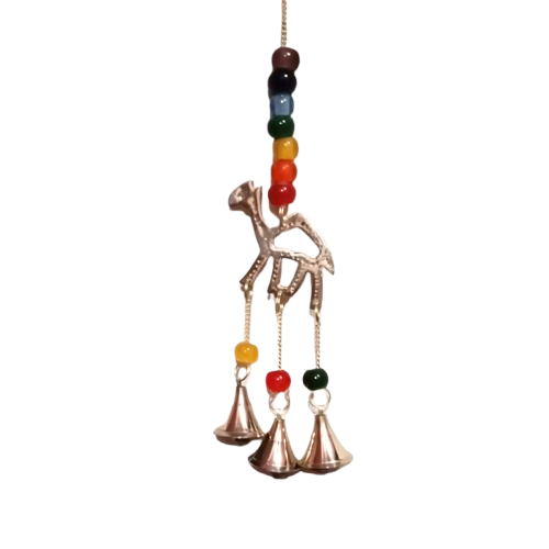 Hot Selling Hand Casted Brass Camel Shape Chime Bells With Beads and Three Brass Bell Handcrafted for Hanging Decoration