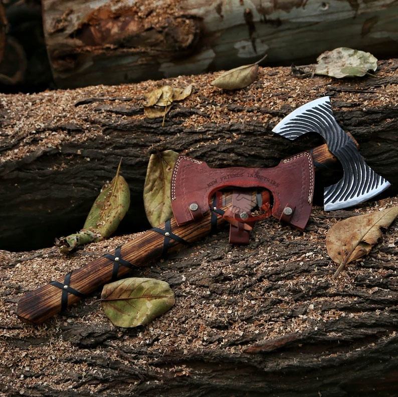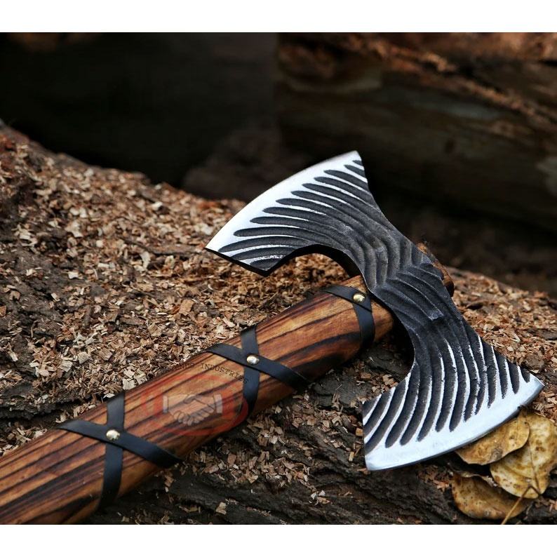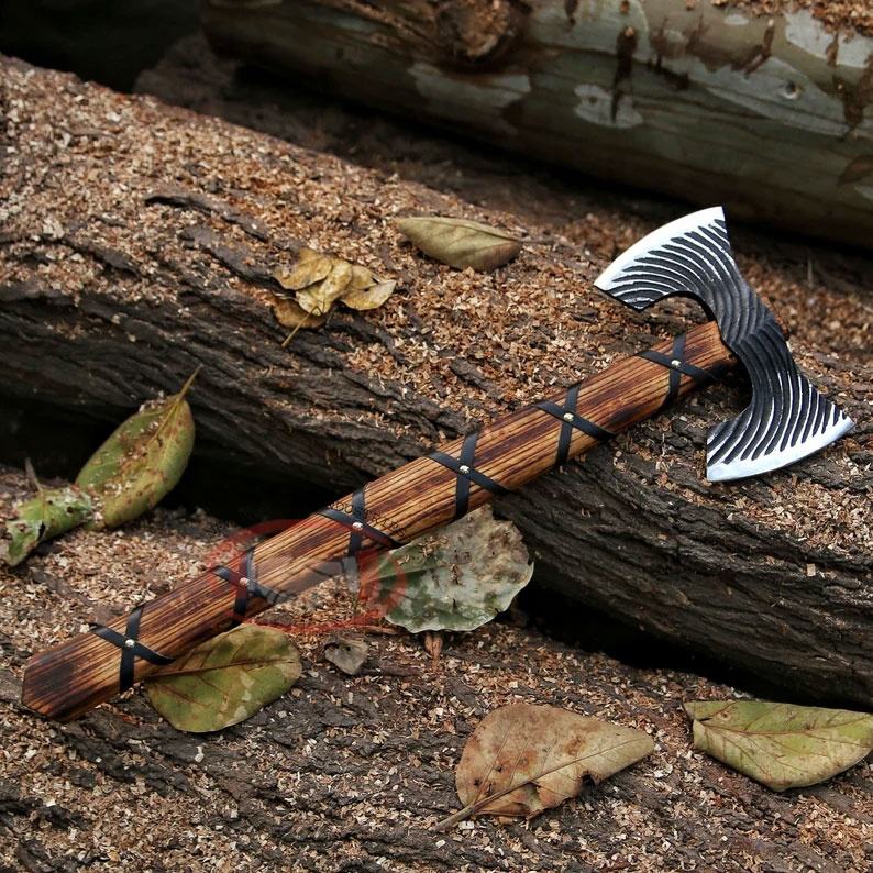 Hot Selling Hand Forged Double Blade Viking Axe, Double Sided Battle Axe, Forged Tomahawk Axe With Leather Rapped Handle & Cover