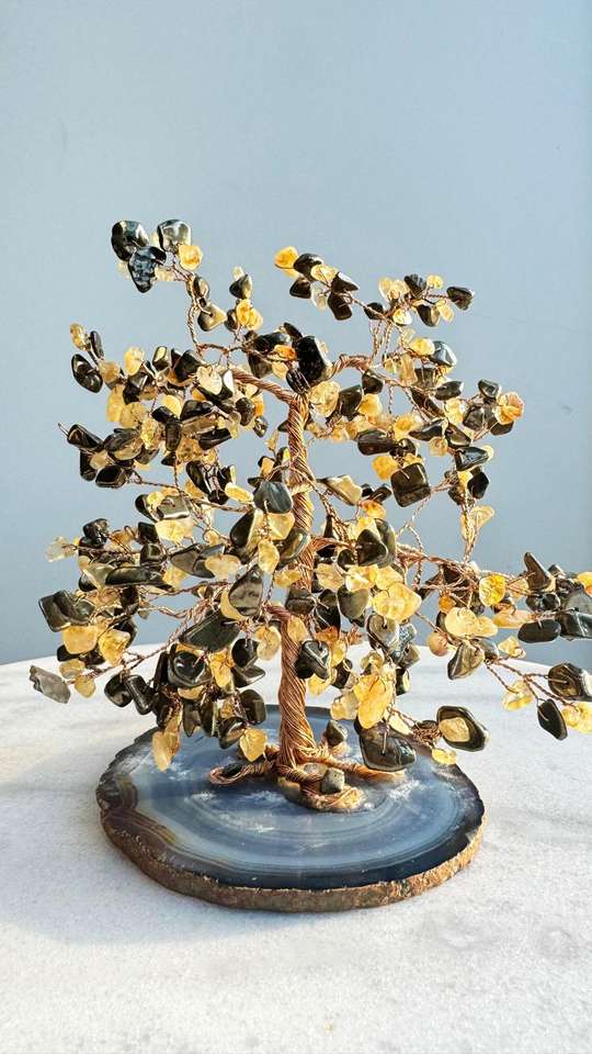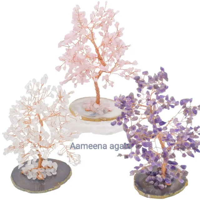 Hot Selling Hand Made Natural Crystal Trees with Agate Slices Base Luck Money Tree for Home Decoration