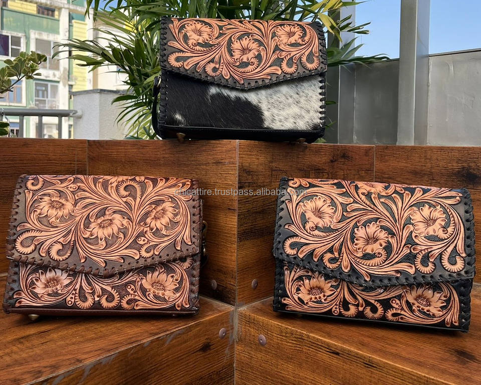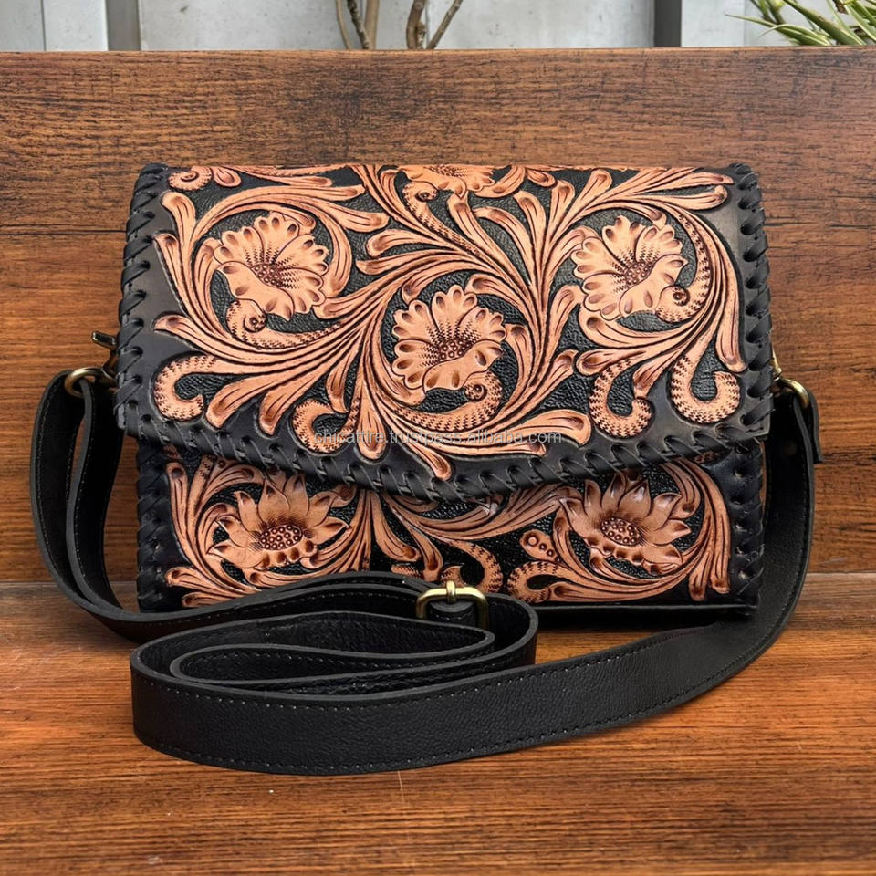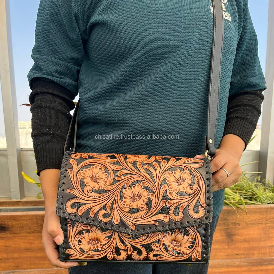 Hot Selling Hand Tooled Leather Crossbody Clutch Bag for Women's High Quality Genuine Cowhide Leather Fashionable Shoulder Bags