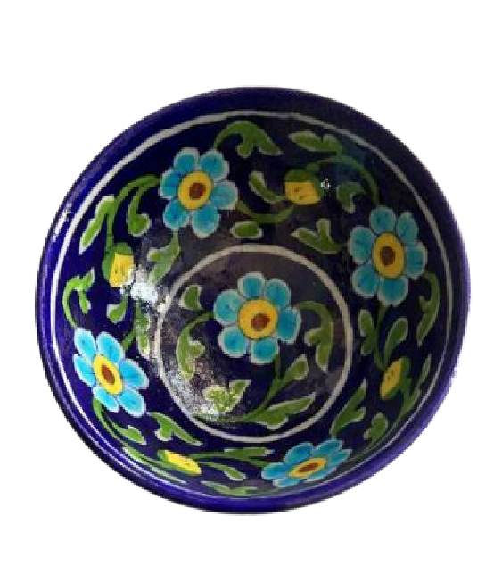 Hot Selling Handcrafted 6 Inch Purple Pottery Bowl Intricate Traditional Blue Ceramic Vibrant Blue Accents Artisan Dinnerware